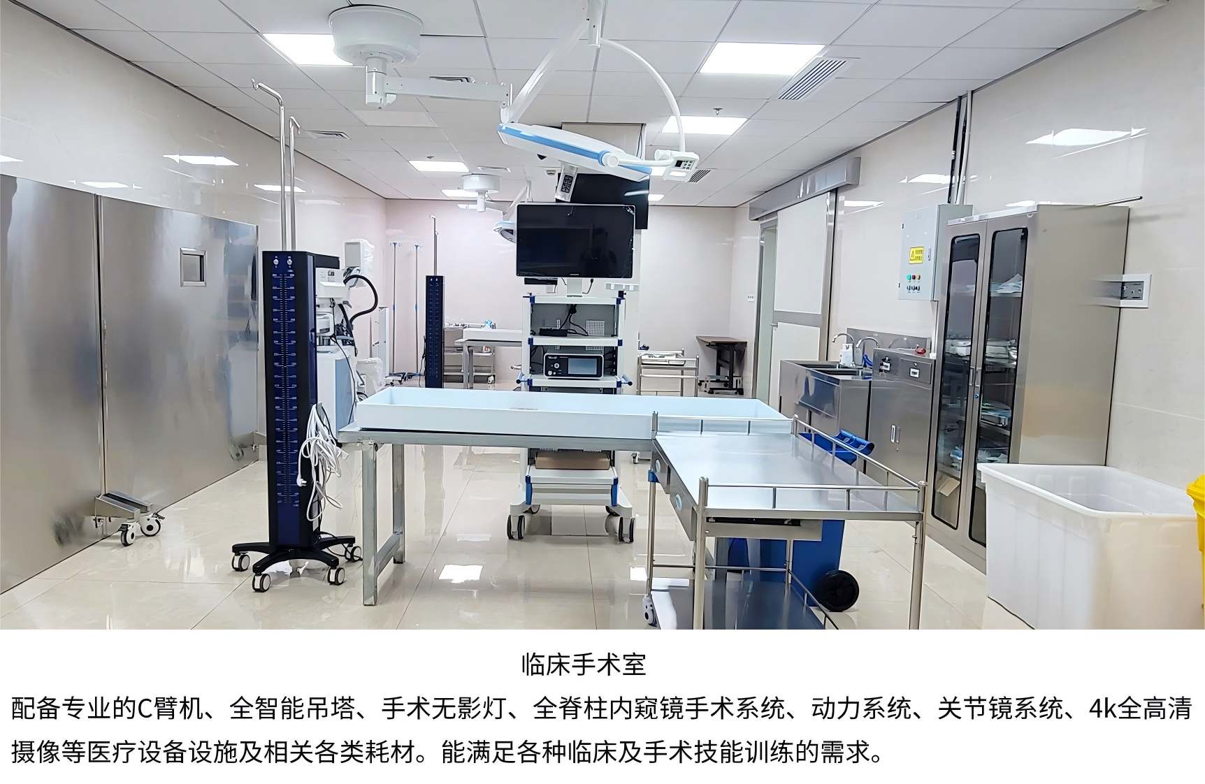 中心现阶段投入使用面积约500㎡,设有现代化临床手术室、模拟训练室、多媒体演讲厅、多功能会议室等。配备专业的C臂机、手术无影灯、全数字X线摄影系统、全脊柱内窥镜手术系统、动力系统等医疗设备设施及相关各类耗材。